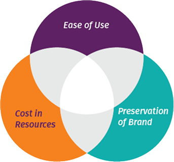 We identified three core criteria for success representing non-negotiable interests of major stakeholders and users: ease of use, preservation of brand, and cost in resources which represented both money and time spent by enablers of the service.