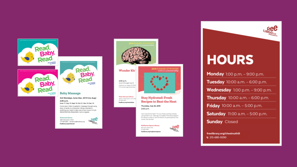 In FY 2018, the Design Studio helped promote 750+ programs a year, a far reach from teh 30,000+ that were held at branches across the city. The production process required staff to submit requests 2 months in advance.