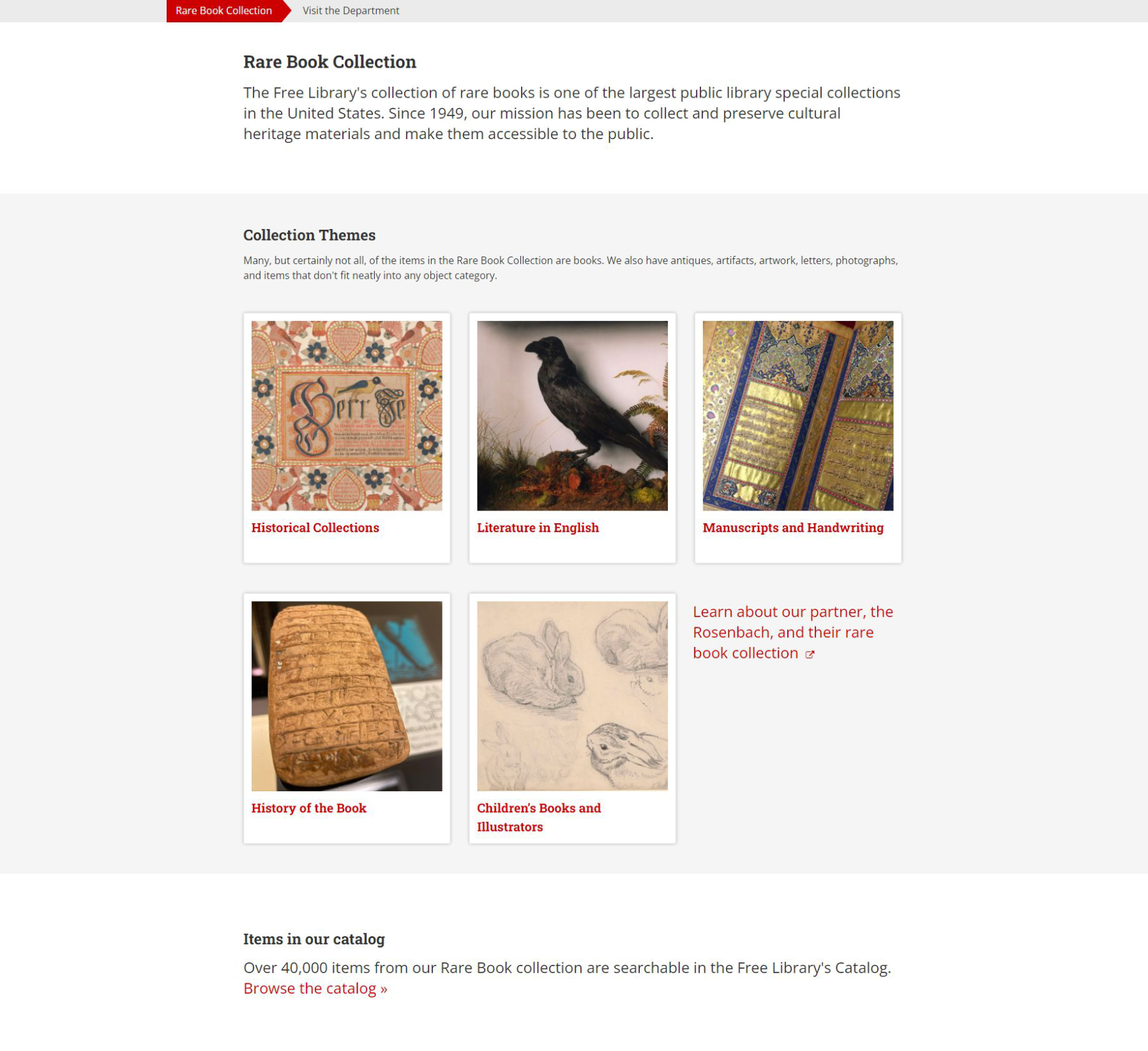 The Free Library's Rare Book Department oversees and connects the public to the library's vast collection of historic objects and artifacts.